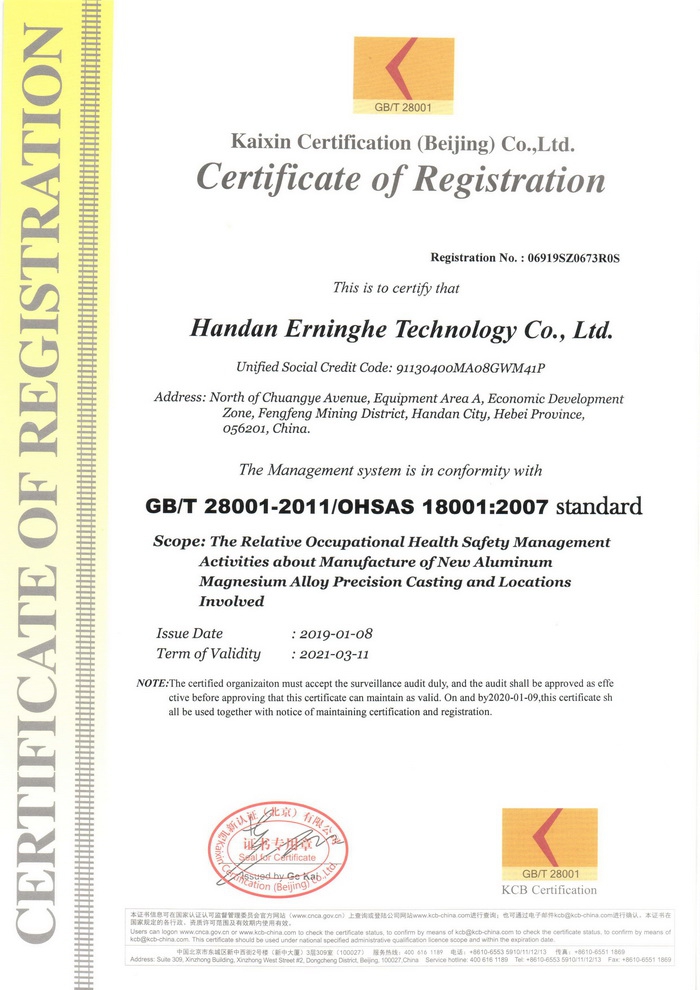 職業健康安全管理體系認證證書